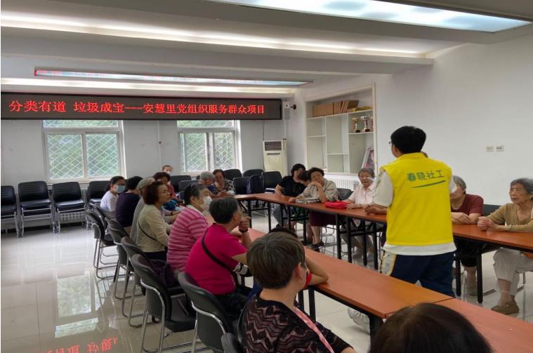 清风网讯(特约记者 常魁星 通讯员 刘彦彤)9月14日,北京市朝阳区安慧里社区与北京市通州区春晓心理社会工作事务所在安慧里社区居委会联合举办了“分类有道,垃圾成宝”主题活动,营造出安慧里社区绿色健康的良好居住环境,提高居民的环保意识。