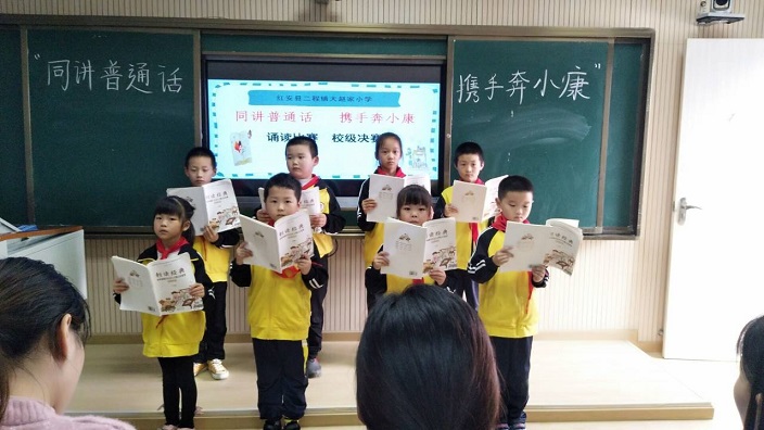 红安县大赵家小学举行“同讲普通话,携手奔小康”诵读比赛