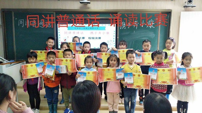 该校在各班级组织学生讲普通话初赛的基础上,举行“同讲普通话,携手奔小康”诵读决赛。参赛学生走上讲台,精神饱满、语言纯正、声情并茂、自然流畅,尽情展示自己的风采。经过评为打分,现场为优胜者颁发了奖状。