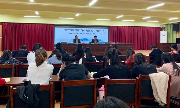 清风网讯(通讯员:陈永红 钱瑶)9月24日下午五点,第二幼儿园在综合楼四楼报告厅召开新闻宣传写作培训会。本次培训活动邀请到教育局信息办余文主任、胡连江主任亲自授课,对二幼全体教师进行宣传写作指导。