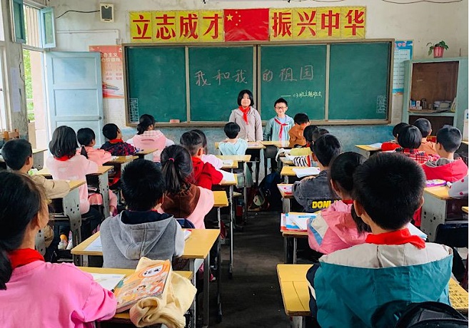 有的班级,同学们在跟着音乐一起唱起《我和我的祖国》,那激情洋溢的歌声唱出孩子们心中对祖国的热爱,唱响了孩子们对祖国深深地祝福!有的同学代表讲述了爱国主义故事,给大家推荐爱国主义书籍,并结合爱国典型人物和事例讲述自己的所学所感。他们在叙述对祖国的真情实感时,下定决心要为祖国的明天更加繁荣昌盛而努力学习。