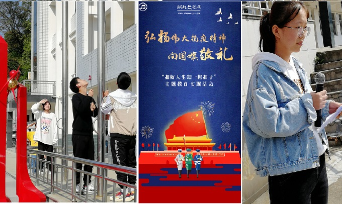 庆中秋,迎国庆,英山县杨柳中学通过烈士纪念日升国旗仪式、国旗下讲话、“弘扬抗疫精神,向国旗敬礼”等途径,借助黑板报、手抄报、书画征文比赛等形式,组织一系列以“向国旗敬礼”为主题的爱国主义教育活动,引领师生用“最美姿势”告白祖国,抒发绵绵不绝的爱国情怀。