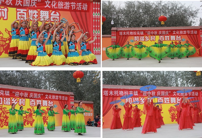 活动在舞蹈中拉开帷幕,演员们优美的舞姿,表达了对祖国的热爱,活动现场,村民演员身穿节日的盛装,载歌载舞,在欢声笑语中,村民与干部一同观看了精彩的文艺节目,随后各精彩节目轮番上阵,令观众们应接不暇,现场不时传来热烈的掌声和欢呼声,活动现场成了一片音乐的海洋,舞蹈跳出了新疆人的热情奔放,将现场气氛推向了高潮。群众代表巴哈古丽激动地说:感谢领导给我们这些舞蹈爱好者提供一个展示自己的舞台,感谢党和政府让我们拥有今天的幸福生活。这场联谊活动,让我们加深了沟通与了解,增进了感情,让民族团结之花常开永驻。