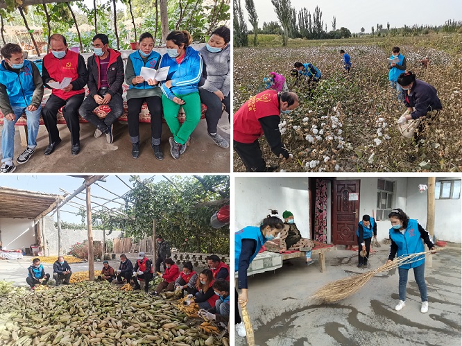 与此同时,志愿服务小分队通过帮助群众拾棉花、搬包谷、打扫庭院等活动,共同劳作,真情实意与群众走在一起 ,心连在一起,共同搭建一座与民交心的连心桥。