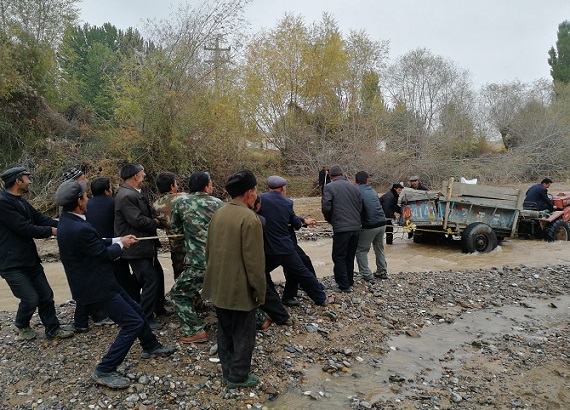 古勒阿塔村背靠大山,地处斜坡,前后落差十几米,村前是一片待收粮食,这波大水流下去势必减产。赵书记定了定神,赶紧安排艾尼瓦尔回村召集些身强力壮的人,带上防洪工具准备抗洪。