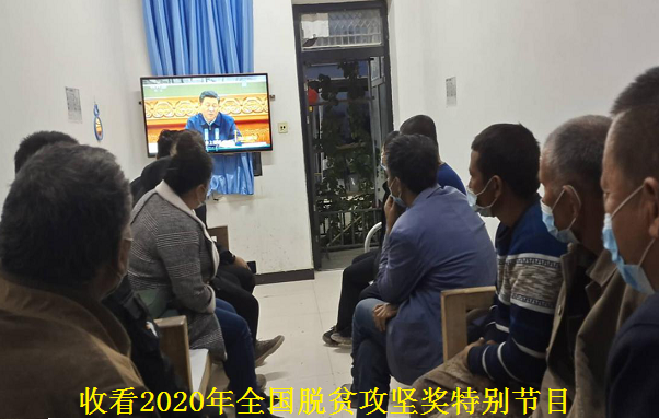 二、10月17日下午,组织工作队队员、村干部收看由国务院扶贫办与中央电视台联合主办的“决战的时刻——2020年全国脱贫攻坚奖特别节目”。今年特别节目以“决战的时刻”为主题,着重展现了2020年全国脱贫攻坚奖获奖者的先进事迹,颁奖词、人物短片等多种艺术表现形式生动展现了获奖者的先进事迹和感人故事,获奖者们用扎根脱贫攻坚一线践行着初心使命,用真抓实干谱写着对党忠诚为民服务的时代赞歌,他们的事迹给大家留下了深刻印象和激励感动。大家纷纷表示,今后的脱贫攻坚工作中,要以他们为榜样力量,要以他们为前进方向,认真学习他们主动担当、敢于攻坚克难的精神,用心学习他们脚踏实地、勇于开拓创新的作风,不断坚定信心决心,不断自我加力加压, 坚决打赢脱贫攻坚这场硬仗,奋力夺取脱贫攻坚全面胜利。