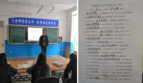 清风网讯(通讯员:宋怀富) 为努力营造书香校园氛围、传承国学经典,大力推广国家通用语言文字,进一步培养我校语文教师的综合素养能力,丰富课余生活,使我校语文教师在“诵读经典”的同时得到更深层次的美的感受,2020年10月12日下午,我校举行了拜城县第一中学首届“教师古诗词大会”,语文教研组全体教师积极参与其中,并由援疆教师郑若、郑秀敏及我校教研室主任宋怀富担任评委。