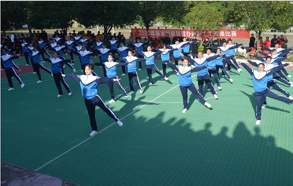 清风网讯(通讯员:石颂军)10月22日,天气放晴,秋高气爽。下午一点半,一场教职工工间操比赛在新邵县陈家坊镇中学体育场隆重举行。