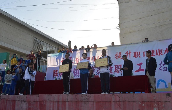 “陈家坊镇这次工间操比赛的最大特色是老年教师全部参赛 ,参赛人数是全县最多的乡镇。加强体育工作,不仅仅是国家的明确要求,也是扎实推进各项工作的重要前提。广播体操比赛是对教职工团队精神、拼搏精神的一次真正考验。”县教育工会主席陈受田在接受笔者采访时如是说。