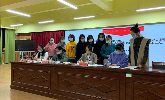 余琳副园长传达了《英山县教育局“立师德、铸师魂,做合格人民教师”主题活动实施方案》,向全体教师解读《第二幼儿园“立师德、铸师魂,做合格人民教师”主题教育活动实施方案》,成立师德师风提升行动领导小组,并对师德师风提升工作作出详细部署安排,要求全体教师深刻学习文件,领会文件精神,切实提高师德师风水平,争做合格人民教师。随后,全体教职工逐一上台,郑重地签订了《师德师风责任书》。