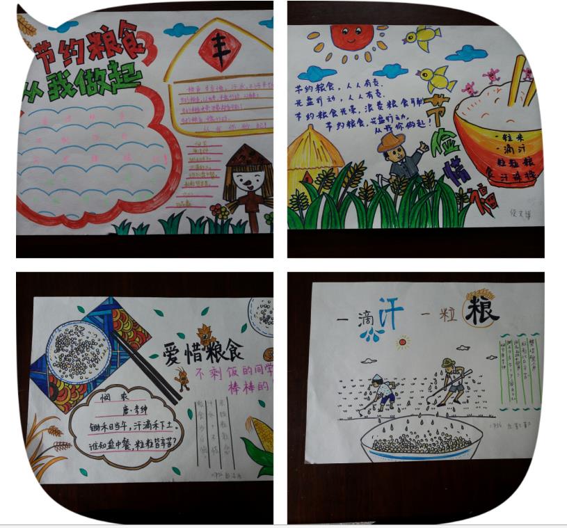 此次活动在班主任的精心指导下,结合残疾学生心理、生理特点和接受能力,各班级的手抄报以图文并茂的形式从各个方面、各个角度介绍了粮食来之不易及光盘行动的知识,内容包括《珍惜粮食,从我做起》、《节约粮食,光盘行动》、《一滴汗,一粒粮》、《珍惜粮食,拒绝剩饭》等,一张张手抄报犹如一套生动的教材,既达到宣传、教育的目的,又培养学生养成爱惜粮食,节约粮食、文明用餐、安全用餐、健康用餐、节约用餐的好习惯。