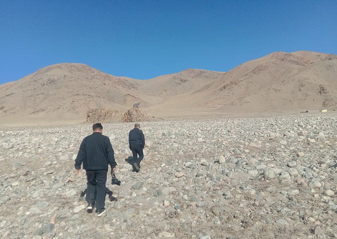 近日,库尔勒铁路运输检察院在依法开展检察公益诉讼专项行动中,发现位于和静县阿拉沟附近的一座烈士陵园存在管理保护不规范的线索,检察官们驱车前往烈士陵园查看情况,由于烈士陵园位于3000多米高的山上,汽车无法通行,他们便下车步行上山。