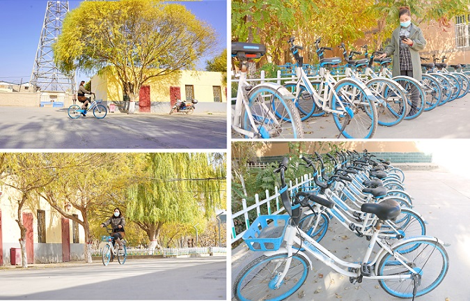 墩阔坦镇墩阔坦村阿曼尼沙·斯迪克说:“有了共享单车,出去买东西或者串门都特别方便,不用走路了。”