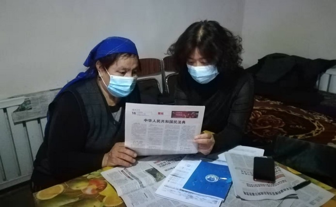 清风网讯(通讯员:桑格 古丽孜亚)为深入开展《中华人民共和国民法典》学习宣传教育活动,和布克赛尔县生态环境局党员干部开展“民族团结一家亲”活动的契机,与亲戚共学民法典,切实将普法教育落到实处、落到深处。