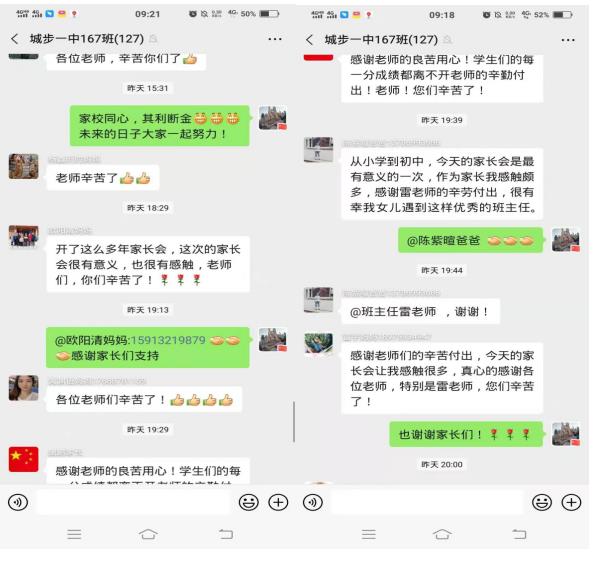 这是11月22日中午,城步一中全校性家长会结束后初二年级167班家长向学校和老师的点赞和告白。