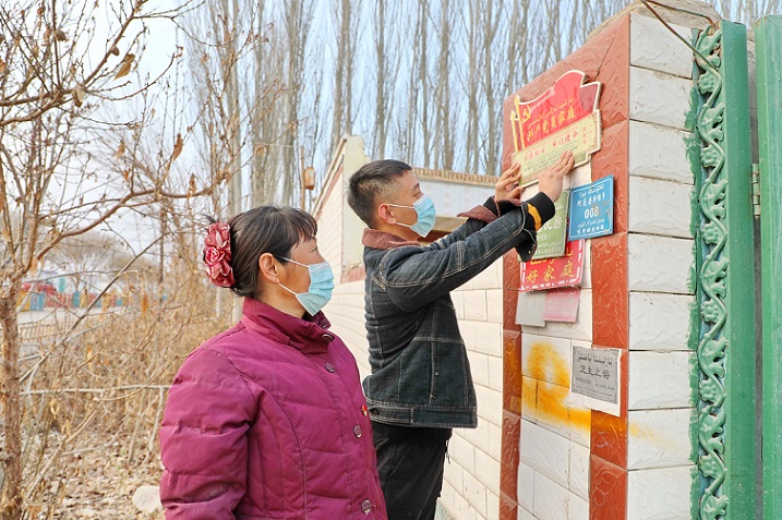 12月16日,新疆库车市阿克吾斯塘乡党员干部正在给农民党员家庭挂牌。今年以来,该乡坚持党建引领,积极开展农村“共产党员家庭”授牌工作,党员家庭“挂牌”亮身份、亮责任、亮承诺,把牌子当成“荣誉书”“责任书”“监督镜”,营造比超赶学的良好氛围。