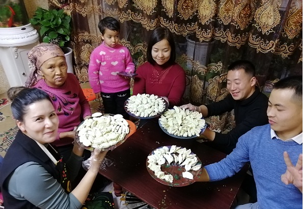 “这饺子吃起来就是香,都是满满的爱啊!”阿迪拉·阿塔伍拉老师兴高采烈的说到。