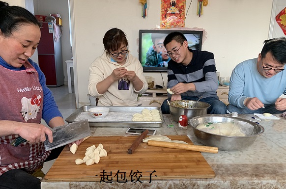 在亲戚毛金霞家中,大家分工协作包起饺子,有人和面,有人洗菜,忙的不亦乐乎,从未包过饺子的孙国强今天学会了三种包饺子的方法,脸上洋溢着心满意足的笑容,经过大家一番劳作,热腾腾的饺子很快就出了锅,大家边吃饺子边谈论冬至的历史渊源及小时候过冬至时的趣事,房子里充满了欢声笑语,现场一片其乐融融。