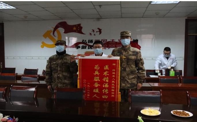县人民医院院长张武军、功能科主任宋建斌代表医院接受了锦旗,感谢部队多年来对医院各项工作的大力支持,表达对人民子弟兵的深情厚谊和崇高敬意,并向部队官兵送上新年的祝福。张武军表示,今后的工作中,医院将坚定不移地开展拥军优属活动,继续发挥自身优势,积极满足官兵健康需求,开通绿色通道,为官兵提供便捷优质的医疗服务。希望今后多加互动,同进步、共发展,再续军民鱼水情。