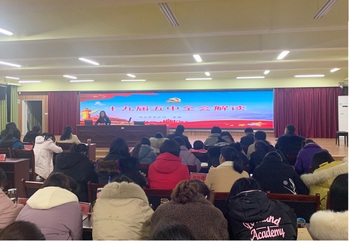赵局长紧密围绕党的十九届五中全会的精神内涵,从关于新成效、新步伐、新提高、新进步、新水平、新提升等“十四五”时期经济社会发展的“新”目标、二〇三五年社会主义现代化的远景目标及全会提出的十二方面具体举措进行了详细解读。并就姜局长在全县教育教学工作会议上提出的三个“要”,对全体教师提出要求,要求教师们要深刻领会党的十九届五中全会精神,全面贯彻党的教育方针,要突出教育教学中心地位,确保教育教学工作不落空,要深入推行活力教育,打造我县教育质量品牌。并希望教师们始终坚持立德树人的初心,牢记为党育人、为国育才的使命,培养全面发展的社会主义建设者和接班人,为实现“两个一百年”奋斗目标贡献力量。
