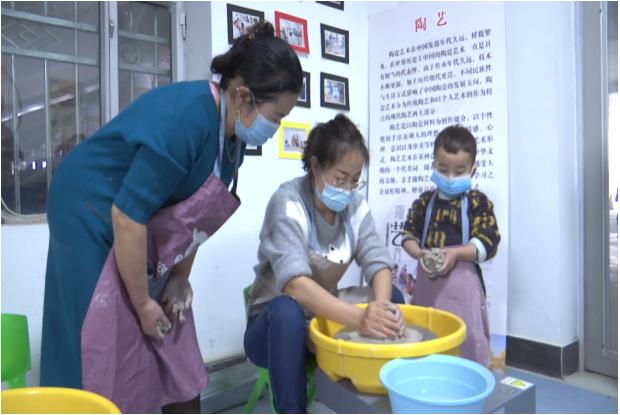 沙雅县第一小学学生马小可一大早就来到了“非遗”文化展馆,听完老师讲解后,他开始在陶艺转盘上制作作品,对于他来说,第一次尝试用高岭土捏制陶罐,难度不小,但通过努力,他顺利完成了自已的陶艺作品,这让他觉得非常有意义。