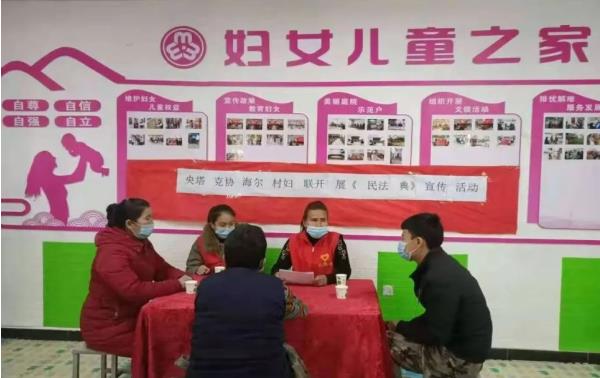 《中华人民共和国民法典》被称为“社会生活百科书”,它关系到每个家庭生活方方面面。为了让辖区群众更好的了解《民法典》这本“社会生活百科全书”,央塔克协海尔乡妇联组织各村妇联主席通过微宣讲、妇女之家、入户宣传等多种形式开展《民法典》宣传活动。