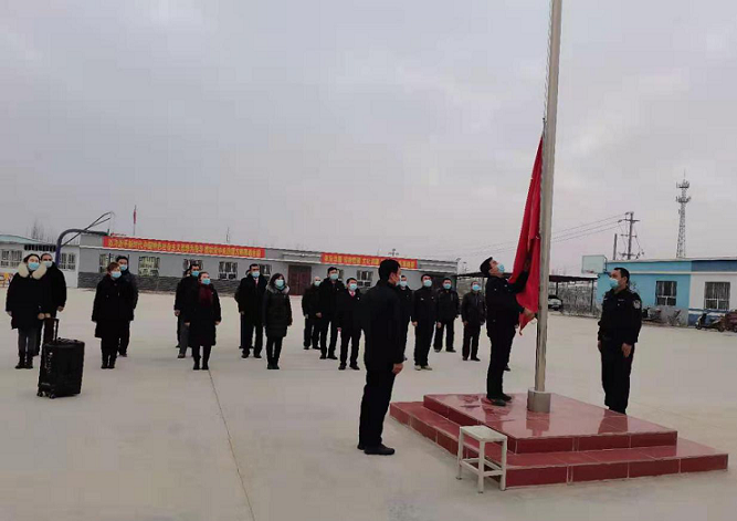 国旗护卫队队员昂首挺胸,迈着铿锵有力的步伐,护卫着神圣的国旗出现时,党员干部心中对国旗的敬意油然而生。“起来!不愿做奴隶的人们……”国歌雄壮响起,国旗护卫队队员威武一挥,在党员干部的注视下,鲜红的五星红旗冉冉升起,嘹亮的国歌声中,鲜艳的国旗下,庄严肃穆的氛围中,极大地激发了党员干部的爱国情感。