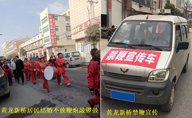 为了减少环境污染,改善空气质量,维护公共安全和人民群众生命财产安全,让黄龙的每一个人都可以健康地享受幸福生活,黄龙镇党委、政府通过人大代表、政协委员走基层抓调研搜集的建议,以党建引领解决问题为出发点,结合本镇实际和群众意愿,决定全镇从2021年1月1日开始实行“禁鞭”。新桥社区作为集镇所在区域,禁鞭工作应率先垂范,社区党委把禁鞭工作列为一项重要工作,采取多种措施,推行微治理,全面落实禁鞭工作。