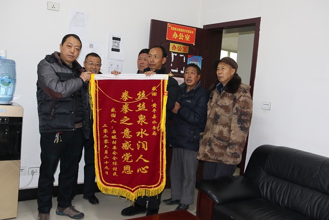 清风网讯(黄平县水务局:罗贤明)2021年1月6日,黄平县水务局办公室格外热闹,这里来了几个百姓代表,手里拿着锦旗,上面写着“拳拳之意感党恩,丝丝泉水润人心”的感语。叫陶廷昌的村民感慨的说,我们终于能喝上干净清澈的自来水,告别了祖祖辈辈马拉人挑、望天喝水的历史”。这真的要感谢党的好政策,感谢黄平县水务局。