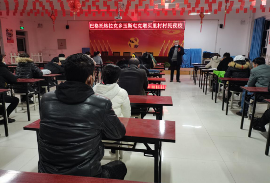 清风网讯(阿瓦提县农业农村局:刘旭强)自12月月以来以来,玉斯屯克墩买里村村民国语夜校有声有色地开展起来,阿瓦提县农业农村局驻村工作队3名队员主动当起了国语班的授课老师,同时组织返乡大学生帮助开展国语夜校。坚持每周6天、每天不少于1个小时的国语培训,夜校以《阿克苏地区国家通用语言文字培训辅导资料》为课本,两名老师交替上课,工作队员负责协助学员理解生词、课文,返乡大学生负责规范学员的口语发音、提高日常交流水平。上课过程中,老师通过阅读理解、情景对话、看图说话等方式,请学员用国语回答问题,加深理解,学员们则聚精会神地聆听讲课、认真做笔记。同时,在国语的培训中还加入红歌的学习,同时还插入观看红色电影及电教片,采取寓教于乐的方法为村民当好政策宣讲员、群众服务员,提高了村民国语水平及政策法规知晓率。村党支部书记吾斯曼·沙吾尔说:通过国语学习村民学会了用国语交流,许多村民走出家门就业了,在他们的影响下越来越多的村民主动学习国语,村委会的凝聚力不断增强。