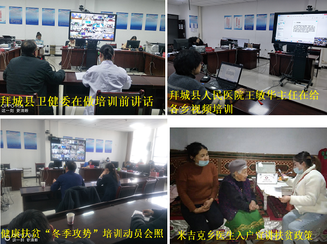 清风网讯(拜城县卫健委 贾小会、马素芬)为进一步巩固拓展脱贫攻坚成果,贯彻落实国家健康扶贫政策,提升群众健康意识,提高群众生活质量,2020年12月15日至2021年1月15日,拜城县卫健委协同县医疗保障局通过视频培训的方式召集各乡镇卫生院医护人员开展健康扶贫“冬季攻势”大培训活动,各乡镇卫生院同步在村级开展健康扶贫“冬季攻势”一系列活动。截至目前,卫健系统在做好人员不聚集的前提下开展健康扶贫“冬季攻势”活动108场次,惠及群众2390人次。