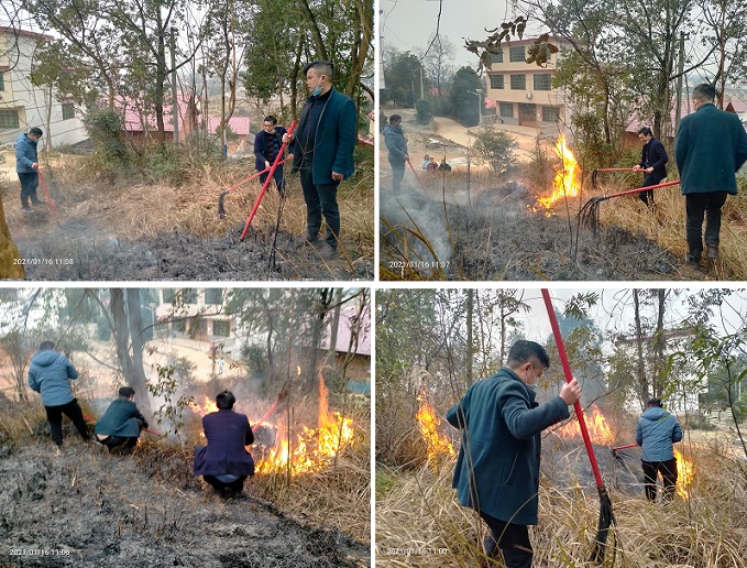 无独有偶,在巡查完横塘片几个点后,返回往老塘片点,进入老塘片一僻静山边村道段,见山边一土处茅草堆燃起零星火苗,当即停车前去查看,看到靠近山边有约有一分地左右的茅草燃媳的迹像,还有几处靠山对面一边矿边的茅草在燃着火苗,于是就边用树枝打火,边打电话给该村大学生村官李志豪,正打着电话中,村干部姜太春就拿着打火工具到了,未及言语,即投入打火中。