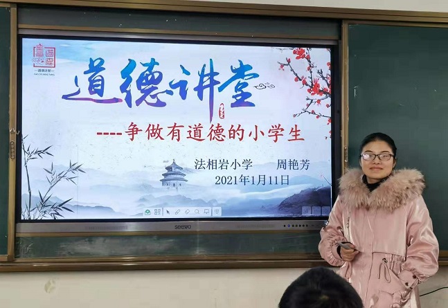 学校安排师德过硬,业务拔尖的优秀教师到各班巡回开设“道德讲堂”,旨在弘扬正气,倡导社会主义核心价值体系。到1月18日为止,“道德讲堂”进校园活动第一阶段圆满结束。目前,一共完成课堂讲解120多学时,师生受益匪浅。