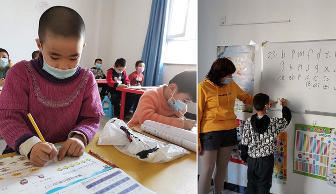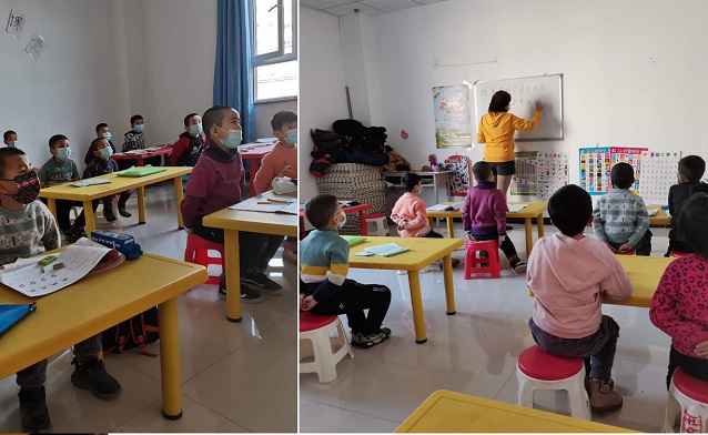 在民生社区阵地二楼里,有一个特殊的小课堂,这是在温宿县退役军人事务管理局、县委编办驻民生社区“访惠聚”工作队队员走访入户时,发现由于小区情况特殊,大部分家长文化素质偏低、为了生活都在打零工,不能很好的辅导孩子的学习。于是,工作队便在居委会楼里开了一个免费的六点半小课堂。