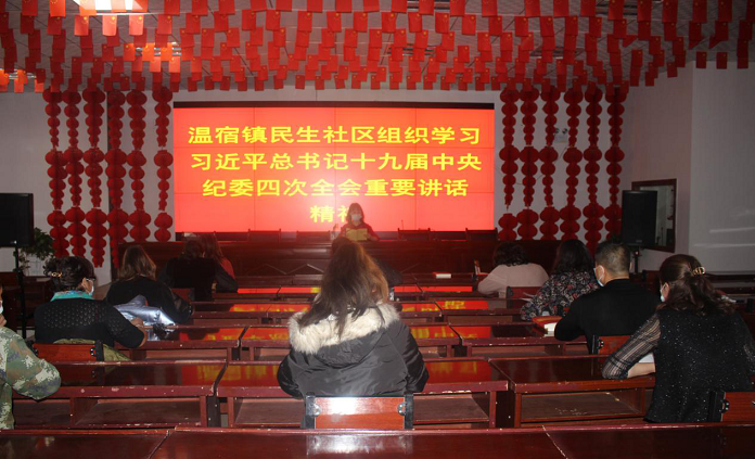 1月22日,温宿镇民生社区组织广大党员干部认真学习领会习近平总书记在十九届中央纪委四次全会上的重要讲话和全会精神。大家表示,2020年是全面建成小康社会和“十三五”规划的收官之年,要立足职责定位,统一思想认识,继续发挥好监督保障执行、促进完善发展作用,推动党中央重大决策部署落地生根,向党和人民交上一份优异答卷。