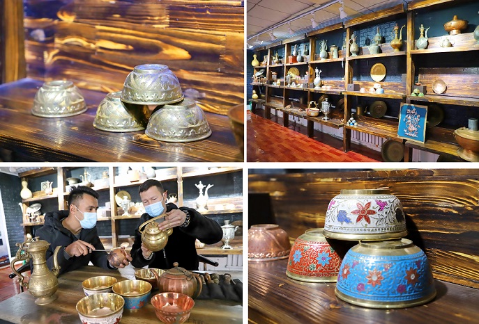 1月27日,新疆库车市热斯坦街道非遗传承人正在教学徒铜器烫刻创作技法。近些年来,库车市大力实施非遗人才“薪火传承”工程,采取“传帮带”方式,以“互动交流面对面、文化传承手把手”的形式,吸引更多年轻人去了解、学习、保护、传承非遗文化。