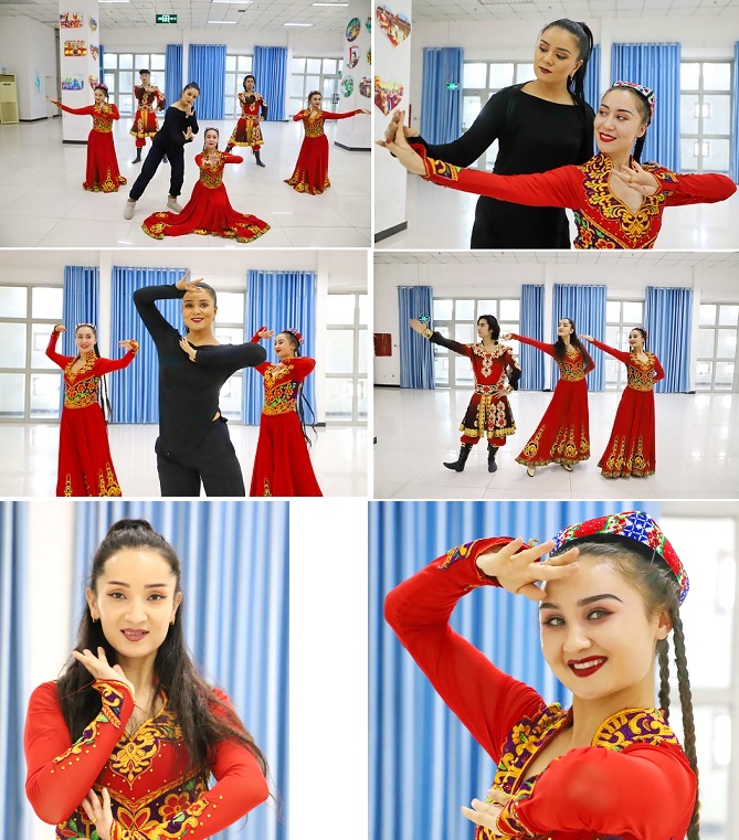 1月28日,新疆库车市文旅局文化舞蹈演员在辅导村级文化工作者民族舞蹈动作。春节临近,该市组织各类优秀文化人才140余人深入基层一线开展“优秀文化人才新春走基层”活动,向基层群众送去歌舞表演、非物质文化遗产展示、技艺传授等形式多样的文化大餐。