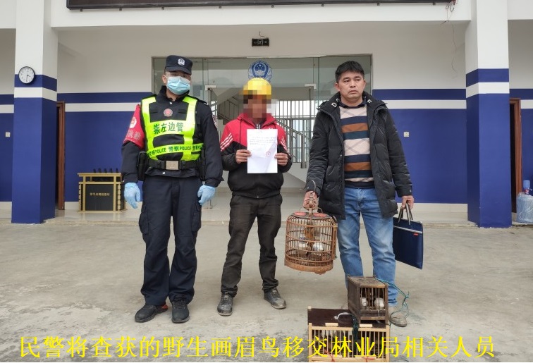 1月21日11时50分许,该站执勤民警在对两辆摩托车依法进行检查时,发现车上挂放大量的鸟笼并有鸟叫声,执勤民警随即对司机进行详细盘查,当场在携带的鸟笼中查获8只画眉鸟。