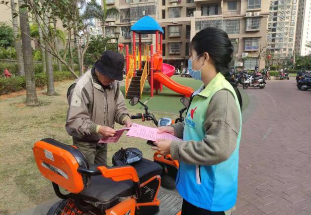 “阿姨,为了您的健康安全,非必要不外出,去人多的地方要戴口罩…”青少年志愿服务队队长周李机浩说道。“志愿星”一方面利用微信群、公众号等渠道途径,发布《防疫科普小知识》等信息,宣传上级部门、主流权威媒体关于新冠肺炎疫情防控的最新动态和科学知识,告知社区居民在疫情常态化防控期间注重个人防护减少非必要出行,不去人员密集场所,鼓励留在本地过节过年,严密防控聚集性疫情;另一方面到社区各个地方发放疫情防控《致社区居民的一封信》,向社区居民的爷爷奶奶宣传防控知识,讲解防控方法,让疫情防控宣传深入到大家心中,为社区防控疫情打好全方位、立体化的宣传舆论基础。