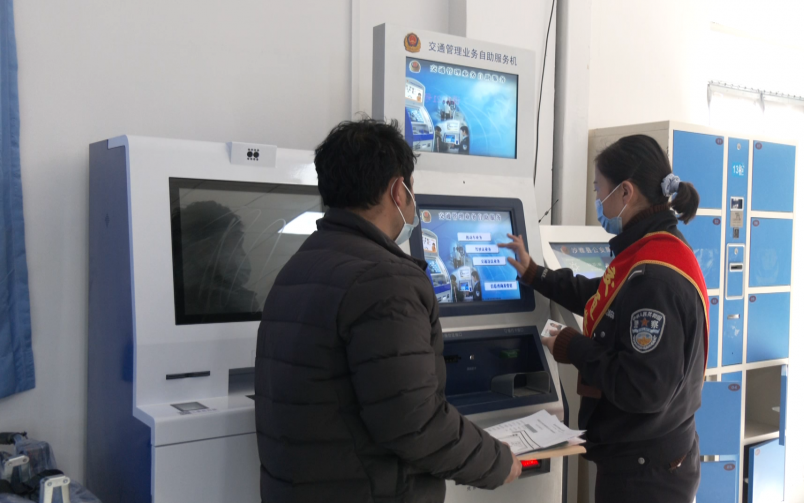 2月2日,在沙雅县公安局交通管理大队车辆管理所办事大厅,前来办理车辆业务的驾驶员来来往往,工作人员正在向前来咨询“学法减分”操作的驾驶员细心讲解该业务的内容和作用。