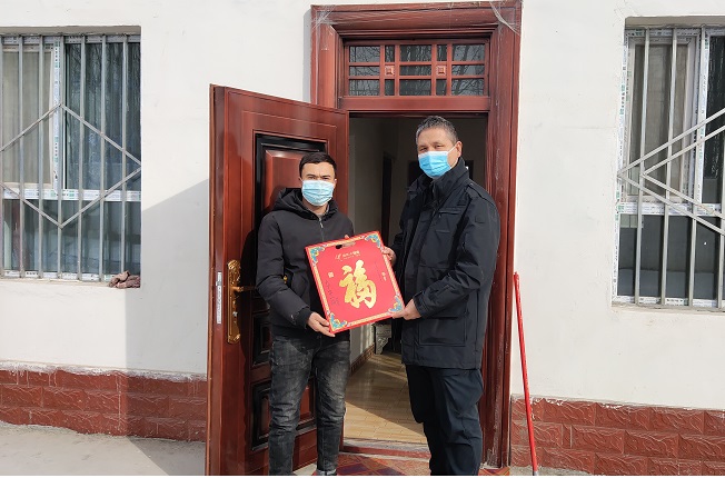 清风网讯(拜城县人民检察院:时建磊)在中华民族传统佳节“春节”来临之际,拜城县人民检察院全院干警深入到察尔齐镇吾斯塘布依村为农牧民群众送去新春祝福,检察院干警每到一处都关切地询问村民过冬情况,赠寒问暖,聊聊家常,给他们带去了温暖和祝福,讲解中华民族传统佳节“春节”的由来,贴“春联”以及“春联”所蕴含的美好祝愿。