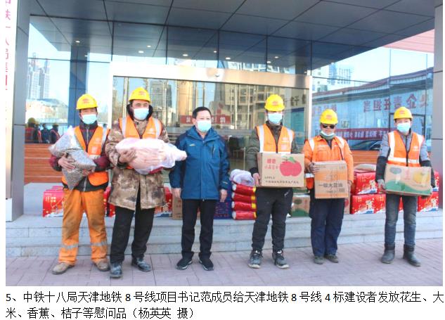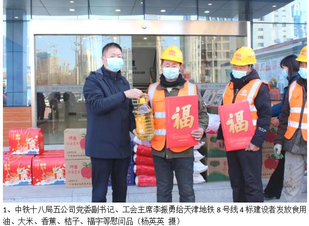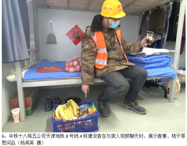 天津地铁8号线项目部为留津作业人员提供舒适、舒心的工作环境,宿舍都配备了空调和24小时热水洗浴,给工友发放米面油、猪肉、水果等慰问品等,让在津过年的工人感受到节日气氛和家一般的温馨。