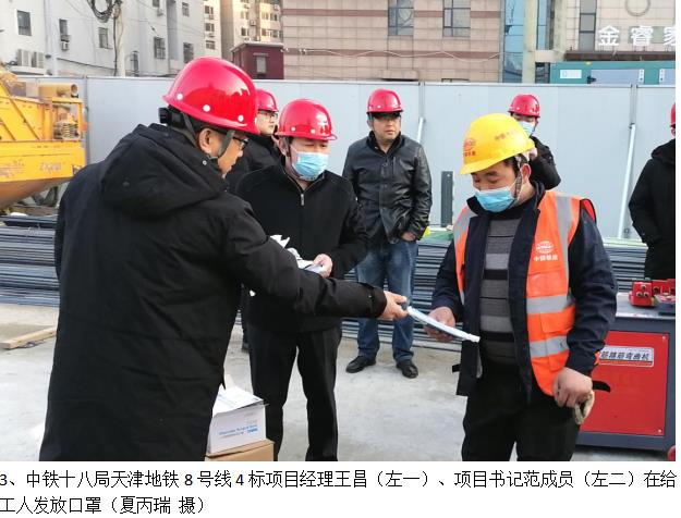 “防控新冠千万条,佩戴口罩第一条。尽量不往人群挤,病毒肯定不缠你……”在项目部,随处可以见预防新冠肺炎的标语。在项目工地入口,佩戴好口罩的工人们依次测量体温并出示健康码。“体温36.2摄氏度,正常。健康码是绿码,可以进工地!”项目部春节期间继续做好疫情防控工作,严防死守,组织驻津人员开展多轮核酸检测,严格控制施工现场人员进出,对工人驻地、食堂加大消杀力度,确保留津人员安心留驻、踏实过节。