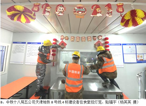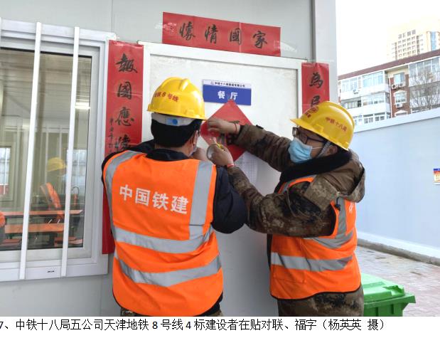 据悉,在“非必要不出津,建议成都道站津过节”倡议下,天津地铁8号线4标段项目职工、施工人员共计200余人坚守岗位。项目部用留心、留岗、留薪的“硬核”措施来慰问留守工友,让大家在工地安心舒心“就地过年”。
