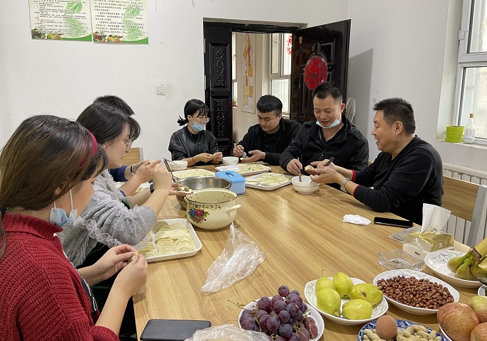 除夕这天,村委会院子里是极其的热闹,驻村工作队和村两委班子一起挂灯笼、贴春联,将村委会大院装扮一新,共同迎接牛年春节的到来。随后是采购原材料、切菜剁肉、调饺子馅,大家一起动手,有说有笑,一边拉家常,一边你填馅、我捏合,很快一个个圆滚滚的饺子摆满了餐盘,其中还不乏各种创意形状的特色饺子。热腾腾的饺子为大家增添了更为浓厚的节日气氛,让所有人都感受到像家一样和睦的温暖。席间,大家观看春晚精彩的节目,笑声阵阵,互致新春祝福,在跨年钟声中,一起燃放震耳的鞭炮,拉开了新一年,新征程的序幕。