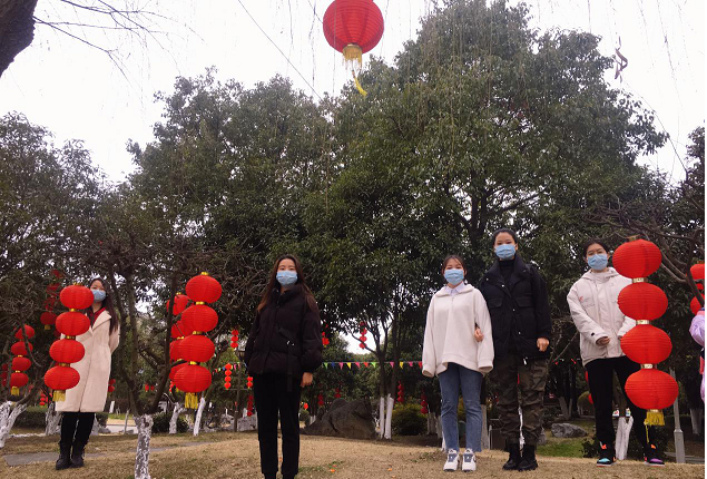 成之庄、状元楼、谢氏宗祠,一幢幢黑白灰相间的建筑倒映在水面上,渗透出水乡古镇清丽婉约的风韵。幕降临的时候,大家兴致勃勃的到汝湖公园观赏夜景。此时的汝湖公园,华灯初上,灯火,车水马龙,光与影交相辉映,妆扮出泗门这座精品小城的美丽夜色。这是今年余姚市政府为满足留在余姚过年的外来务工人员对美好生活的向往,同时按照常态化疫情防控工作要求,布置的灯光秀。这流光溢彩绚丽斑斓的夜景,让几位女员工大饱眼福,流连忘返。