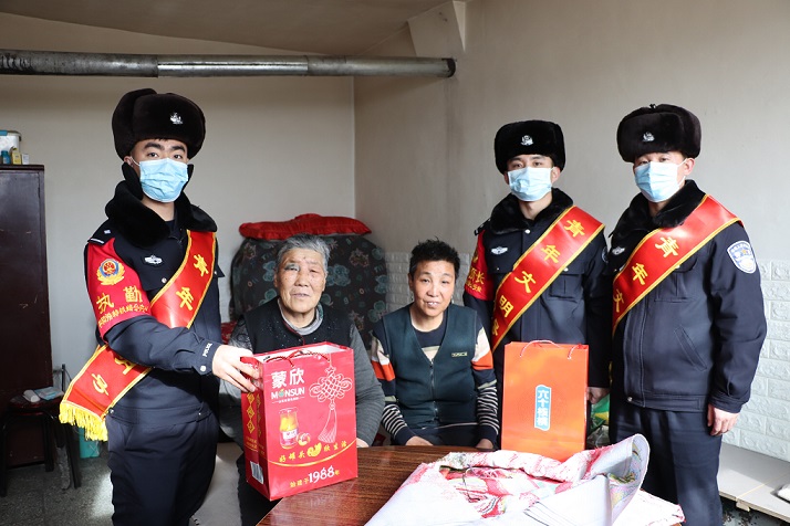 其中有一户居民是曹凯重点关注的对象,每一次下沿线,线路民警曹凯都送去关怀和帮助。这个家里是候某和其女儿两人生活在一起,生活十分艰苦并两人均身患慢性疾病,老人的儿子在外打工很少能回家照看老人和姐姐,曹凯在巡线走访时了解到这种情况后,给老人留下来了联系方式嘱咐老人遇到困难随时打电话,民警们平时在巡线时都不忘去老人家看看,为老人提供一些力所能及的帮助。春节期间,民警们心系老人特意来送上节日的祝福,老人表示心里十分感动,二连所的民警们个个把她们当做家人,有着这份关怀和牵挂,她们心里暖洋洋的。