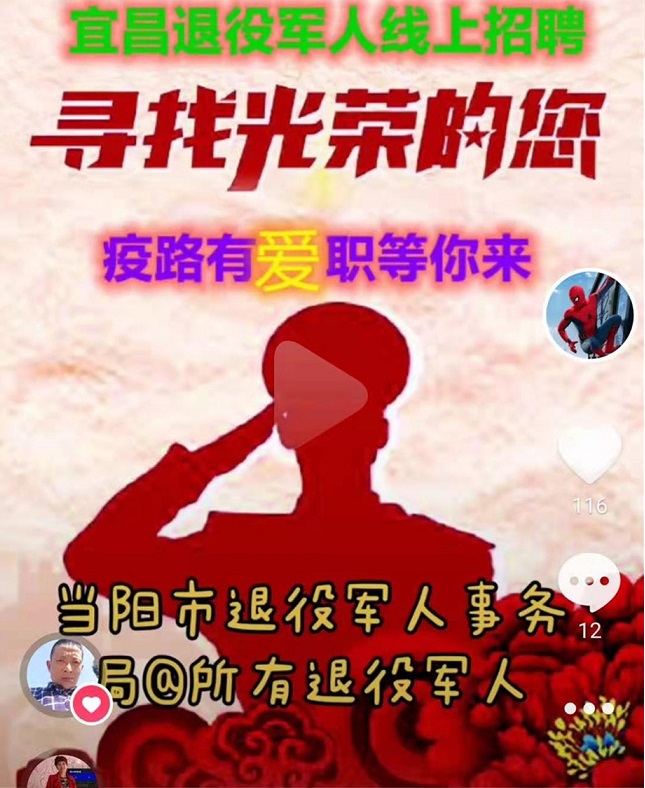 为贯彻落实党中央、国务院及各级党委和政府关于疫情防控、复工复产等一系列重大决策部署,不断增强退役军人的获得感、幸福感、荣誉感,充分调动他们干事创业的积极性、主动性、创造性,让军人成为全社会尊崇的职业,当阳市退役军人事务局全力做好疫情防控期间退役军人就业创业工作,着力搭建退役军人求职者与企业双向交流平台。