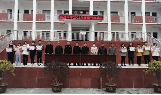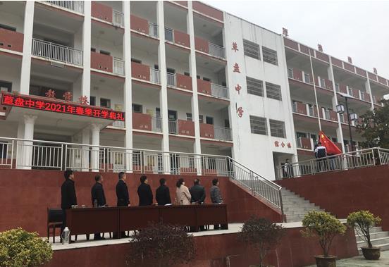 清风网讯(通讯员: 蔡丹、胡明辉)3月3日下午,英山草盘中学全体师生齐聚一堂,参加2021年春季学期开学典礼。出席典礼的还有镇派出所、司法所、食品药品监督管理所的相关领导和家长代表,开学典礼在庄严的国歌声中拉开帷幕。
