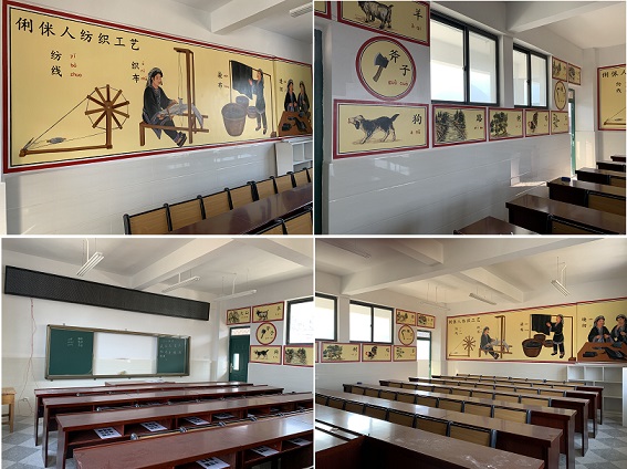 “因为自己的语言与普通话有很大差距,一二年级学生的家长经常反映自己的孩子课堂上听不懂老师的话,有很大的厌学情绪,现在双语教室建设完毕,可以对孩子进行双语教学,让孩子在学习中也能感受自己民族语言的亲切,真切提高孩子们学习的兴趣。”团山村支书李忠海对于双语教室的建成这样评价到。